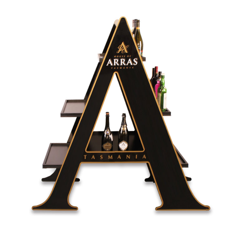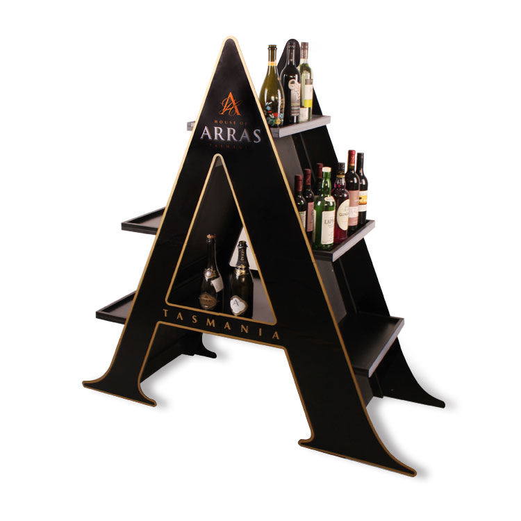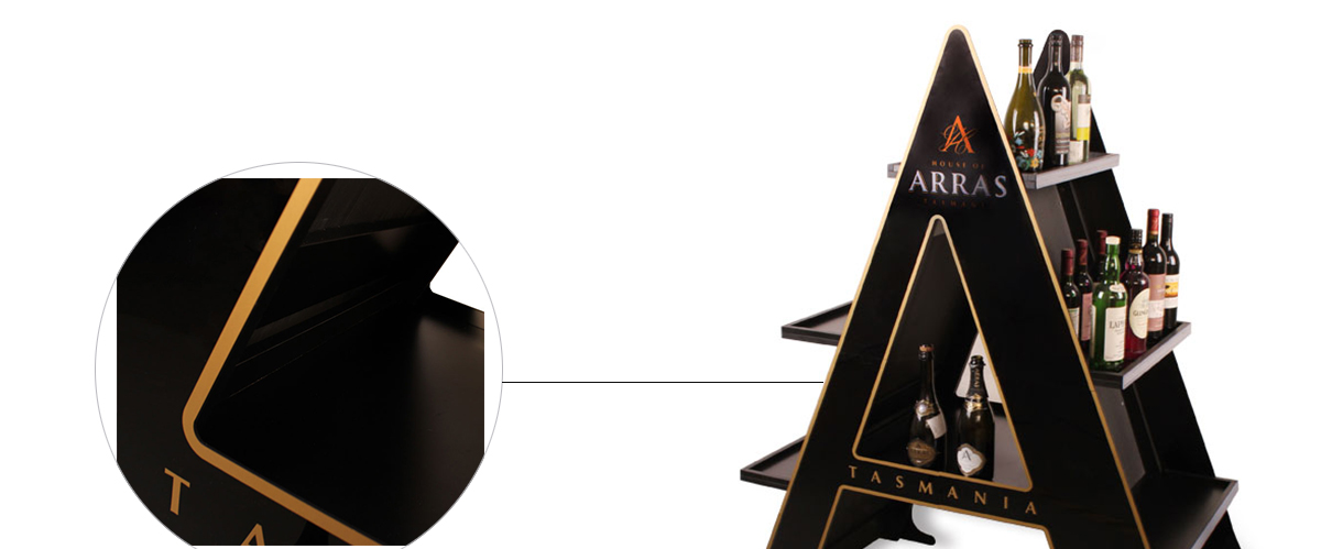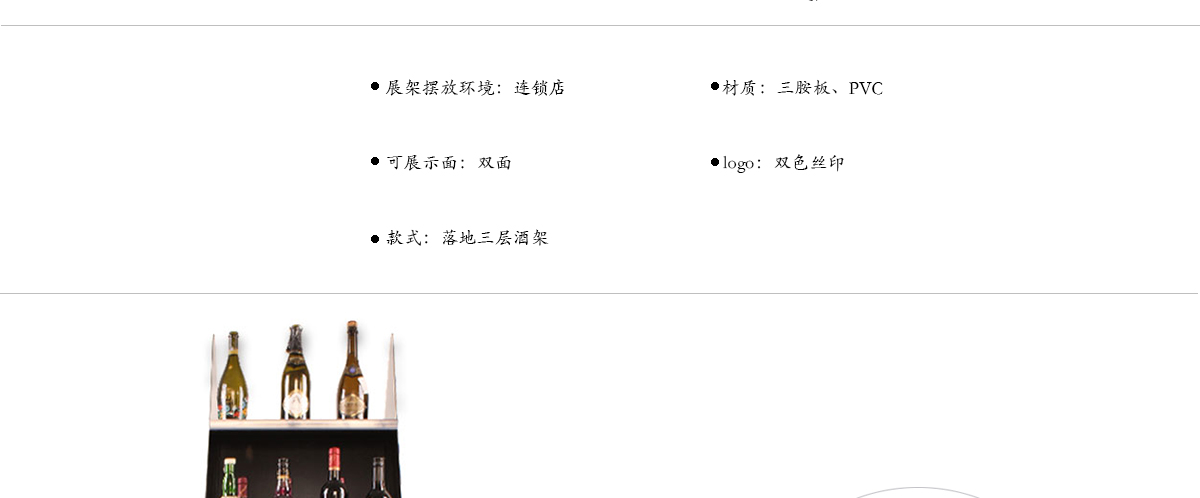 這是一款本公司設計生產(chǎn)的紅酒展示架,由MDF+亞克力材質(zhì)制作而成.展示架的三層結(jié)構(gòu)可以容納至少20瓶紅酒,可用于賣場/專賣店的紅酒日常陳列、節(jié)日促銷等.">